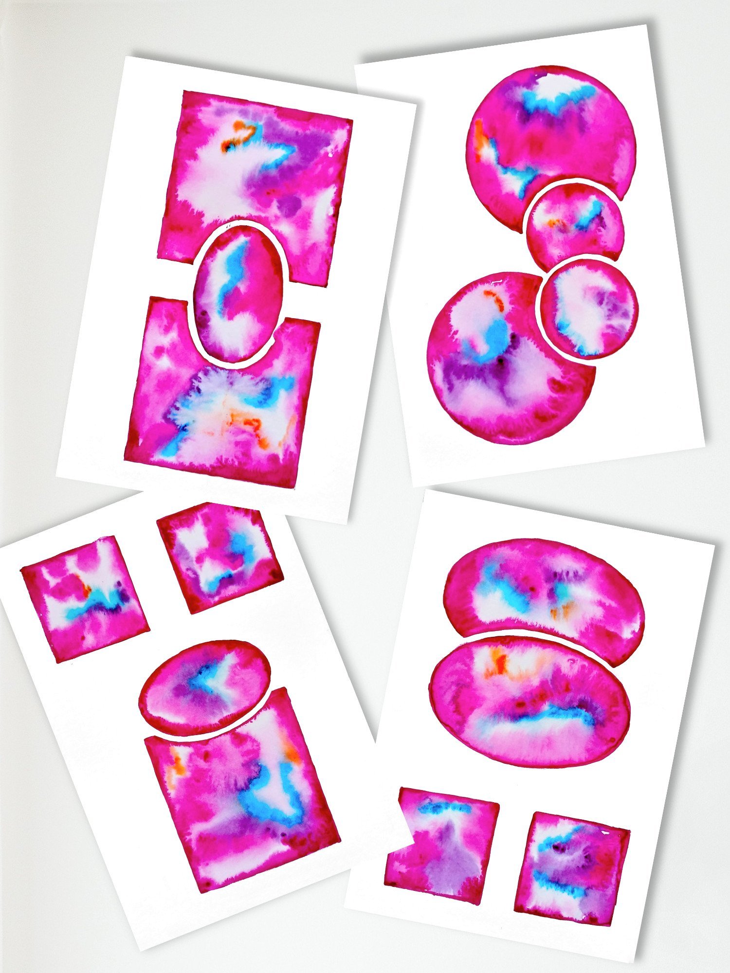 Toda la obra es exclusivamente mía, tanto en diseño como en ejecución, pintada a mano sobre papel de 350gms. de grano medio, libre de ácidos. Con acuarelas de alta calidad y mucha resistencia a la luz, y en cada caso son únicas.
