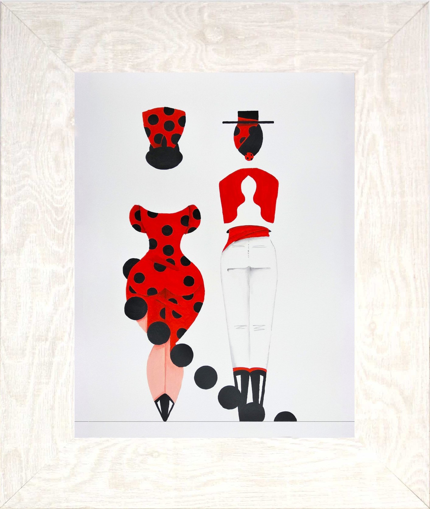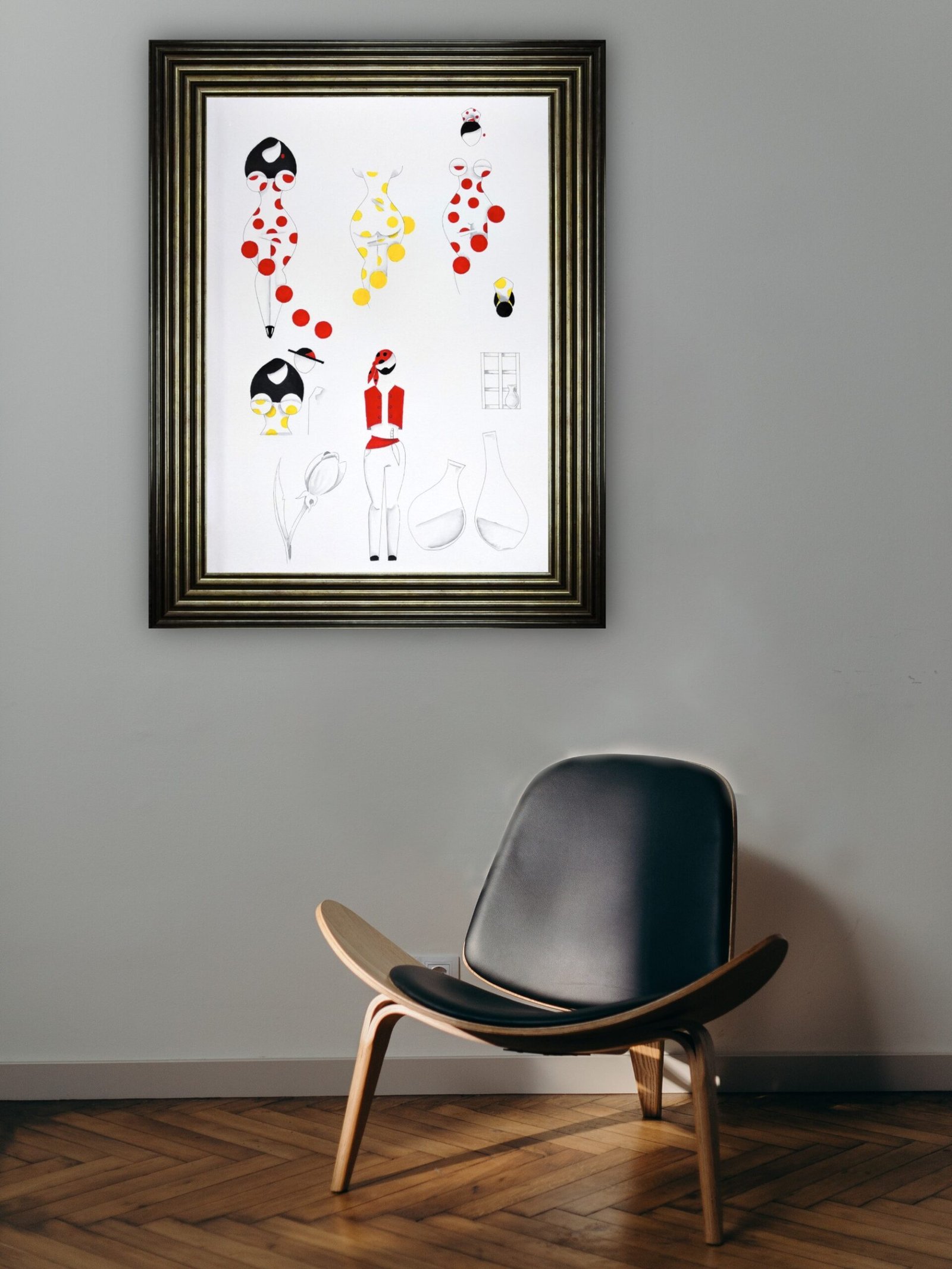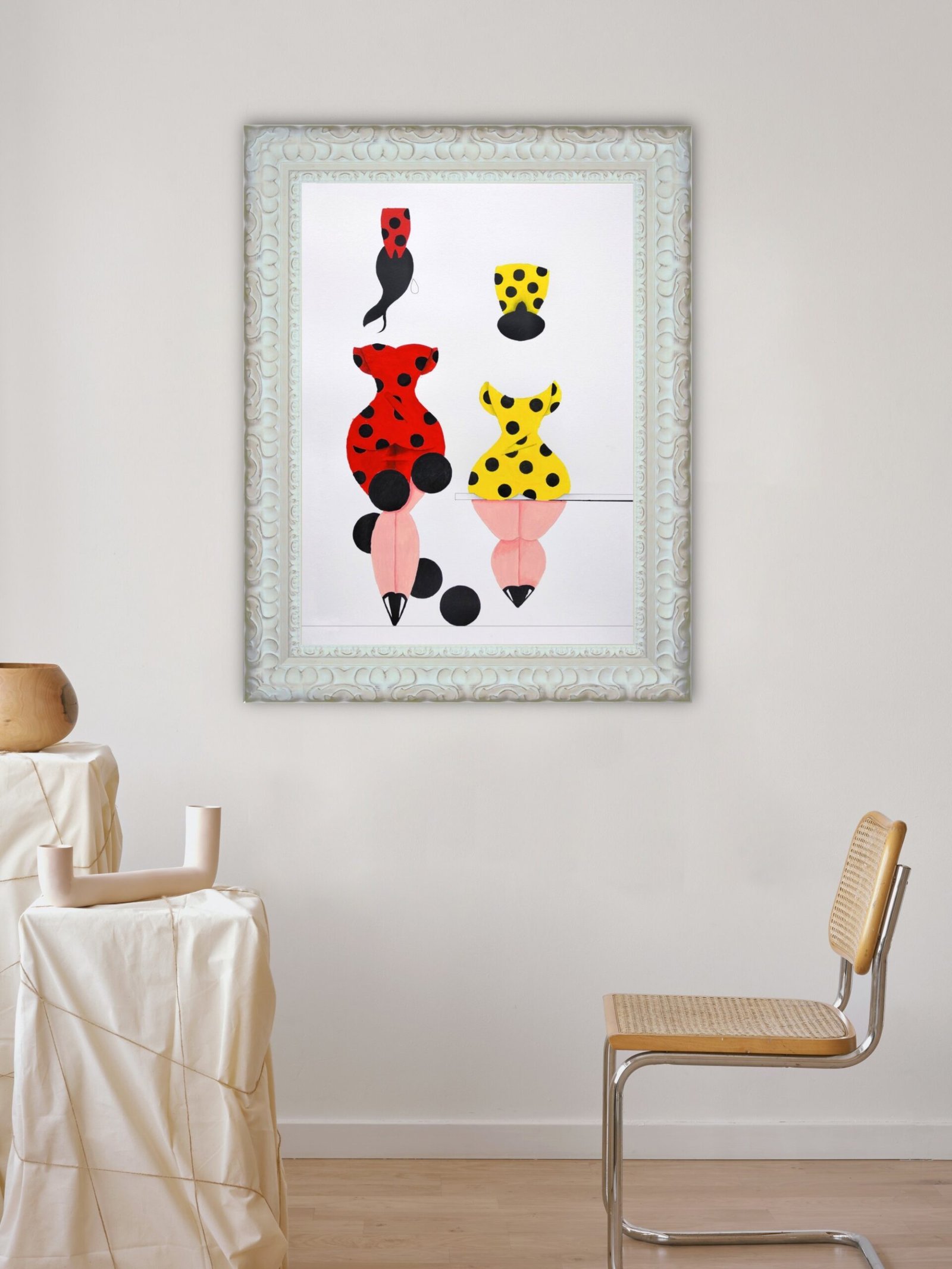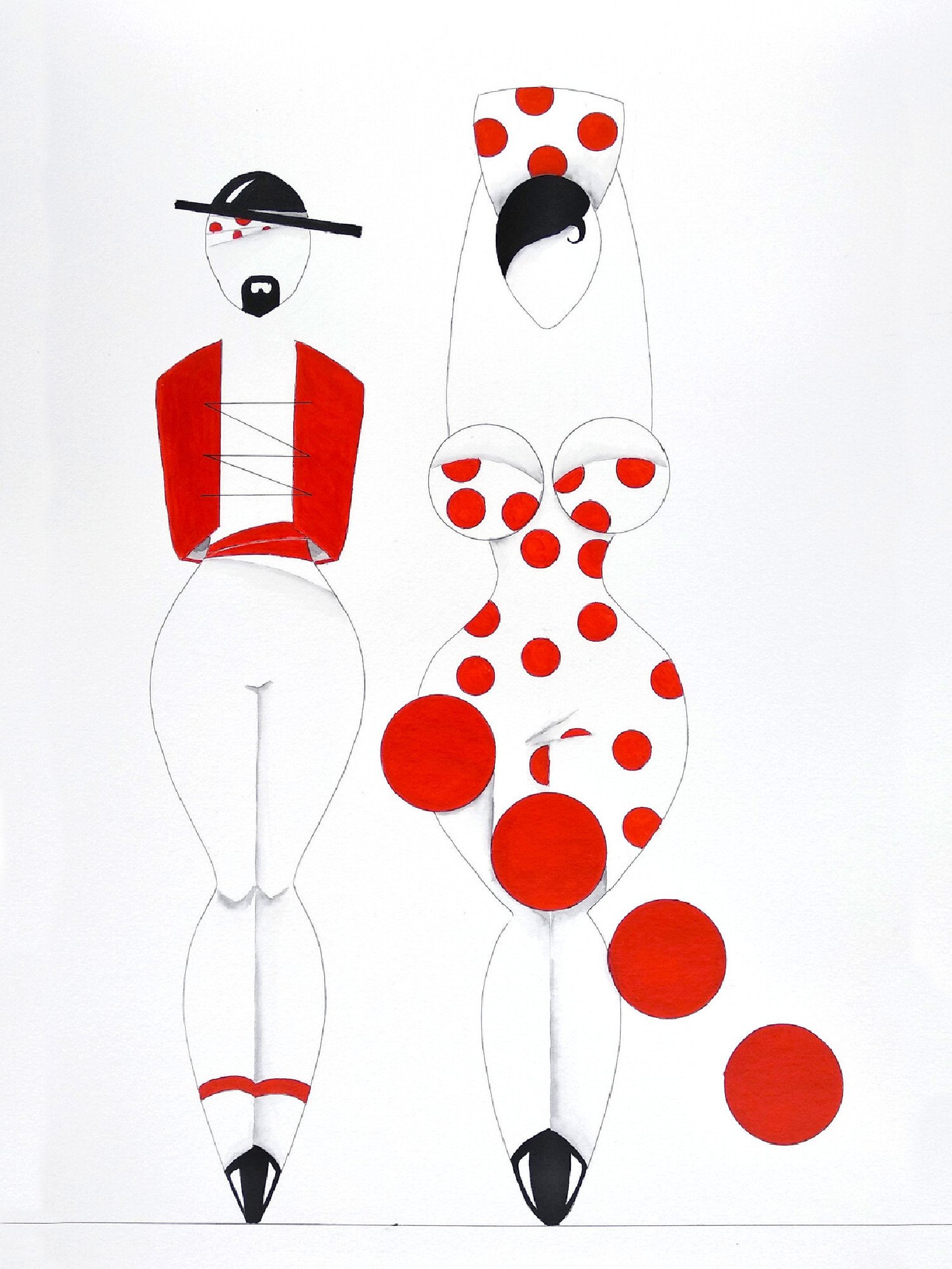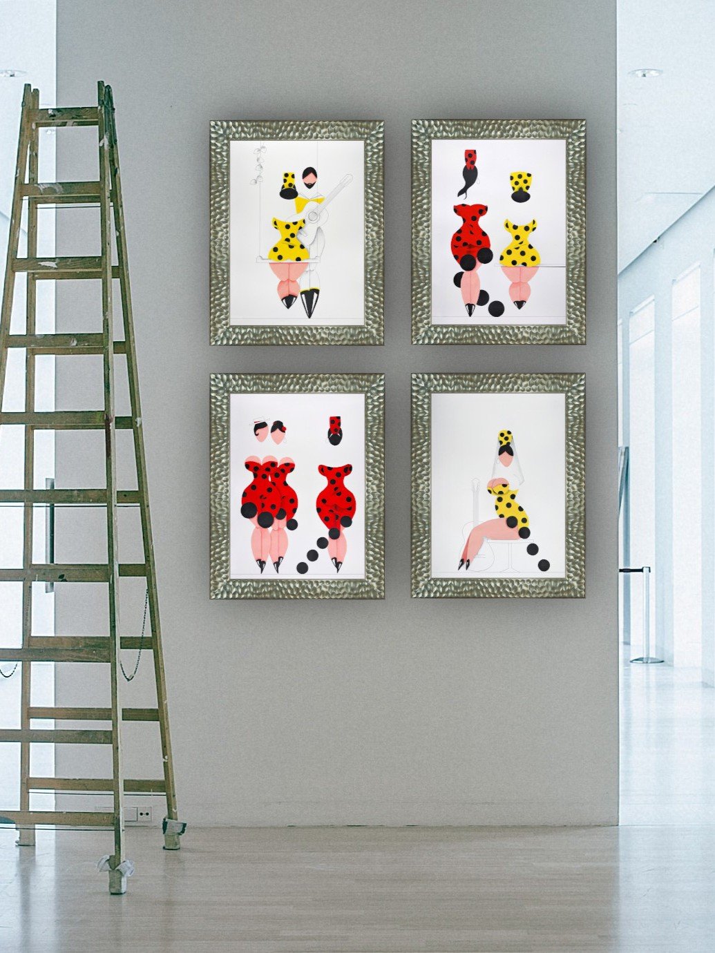 Las formas son simples, los colores puros, los fondos blancos. No hay brazos, ni cuello, ni rasgos que distraigan. La sensualidad aparece en la curva y en la presencia, no en el detalle.