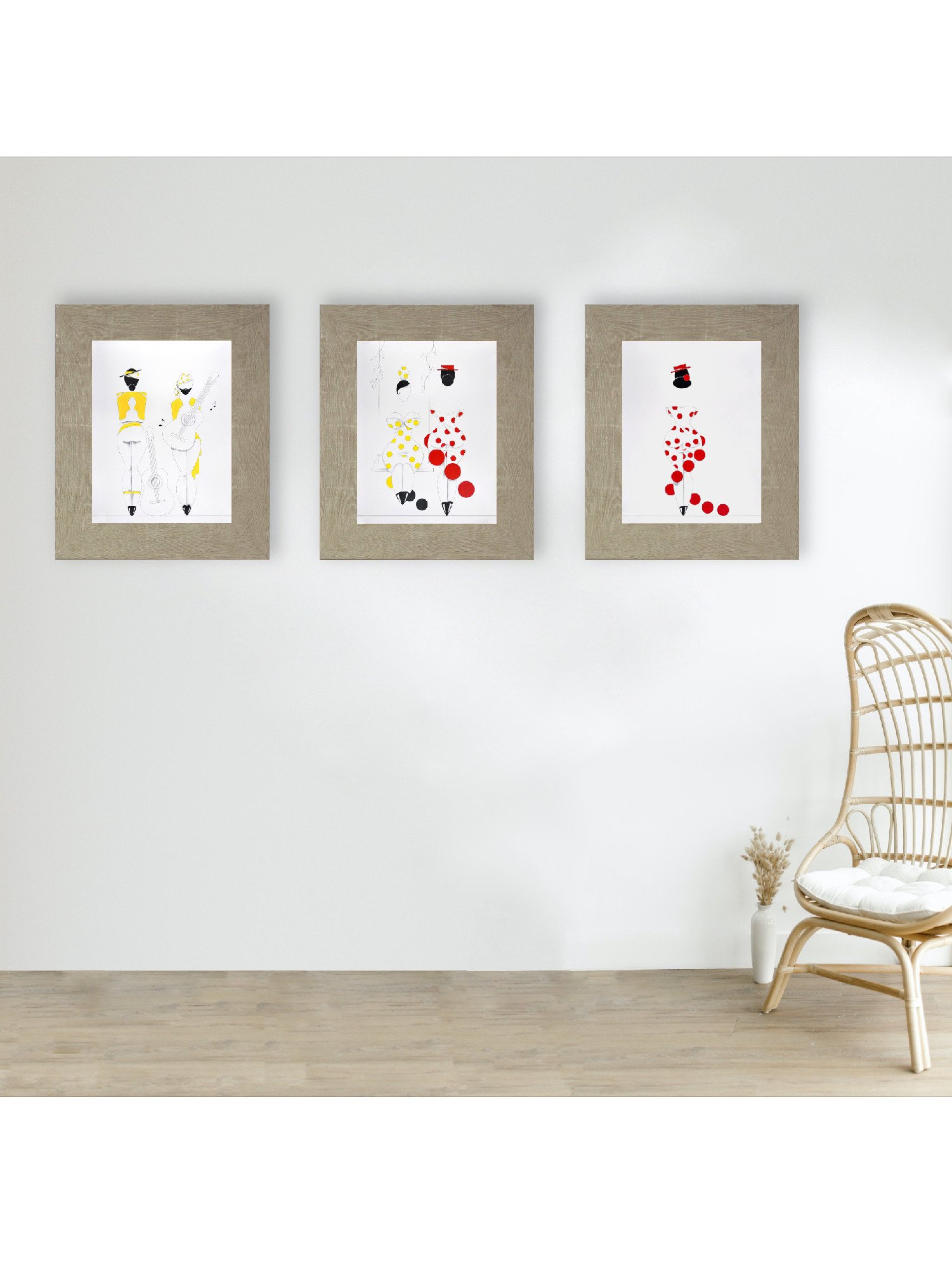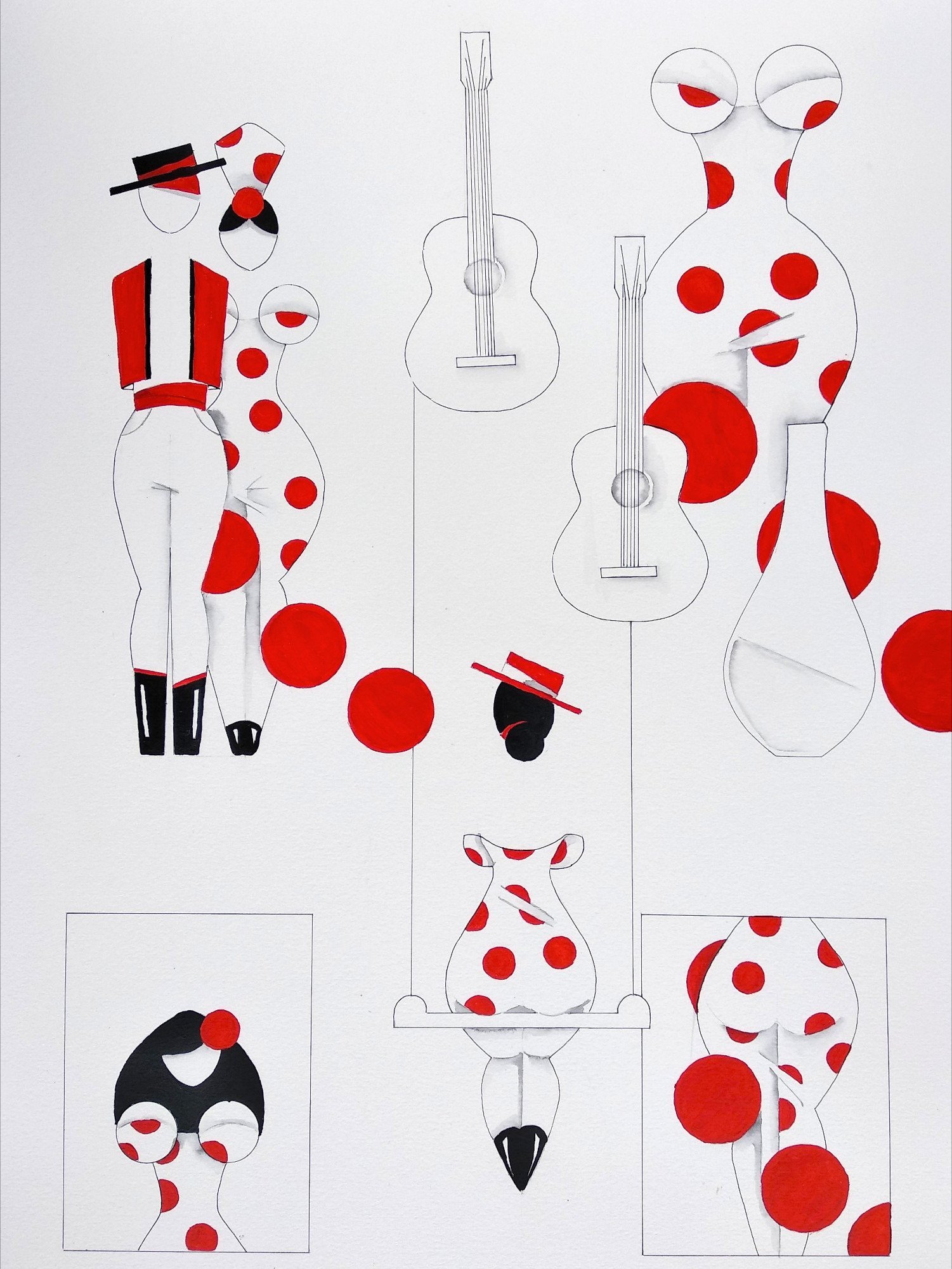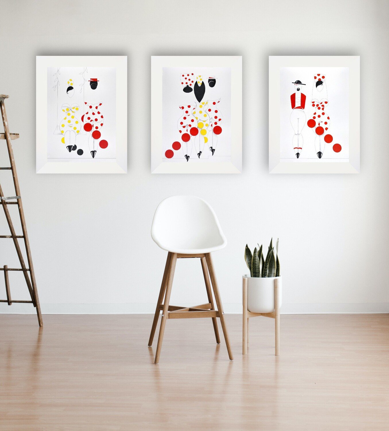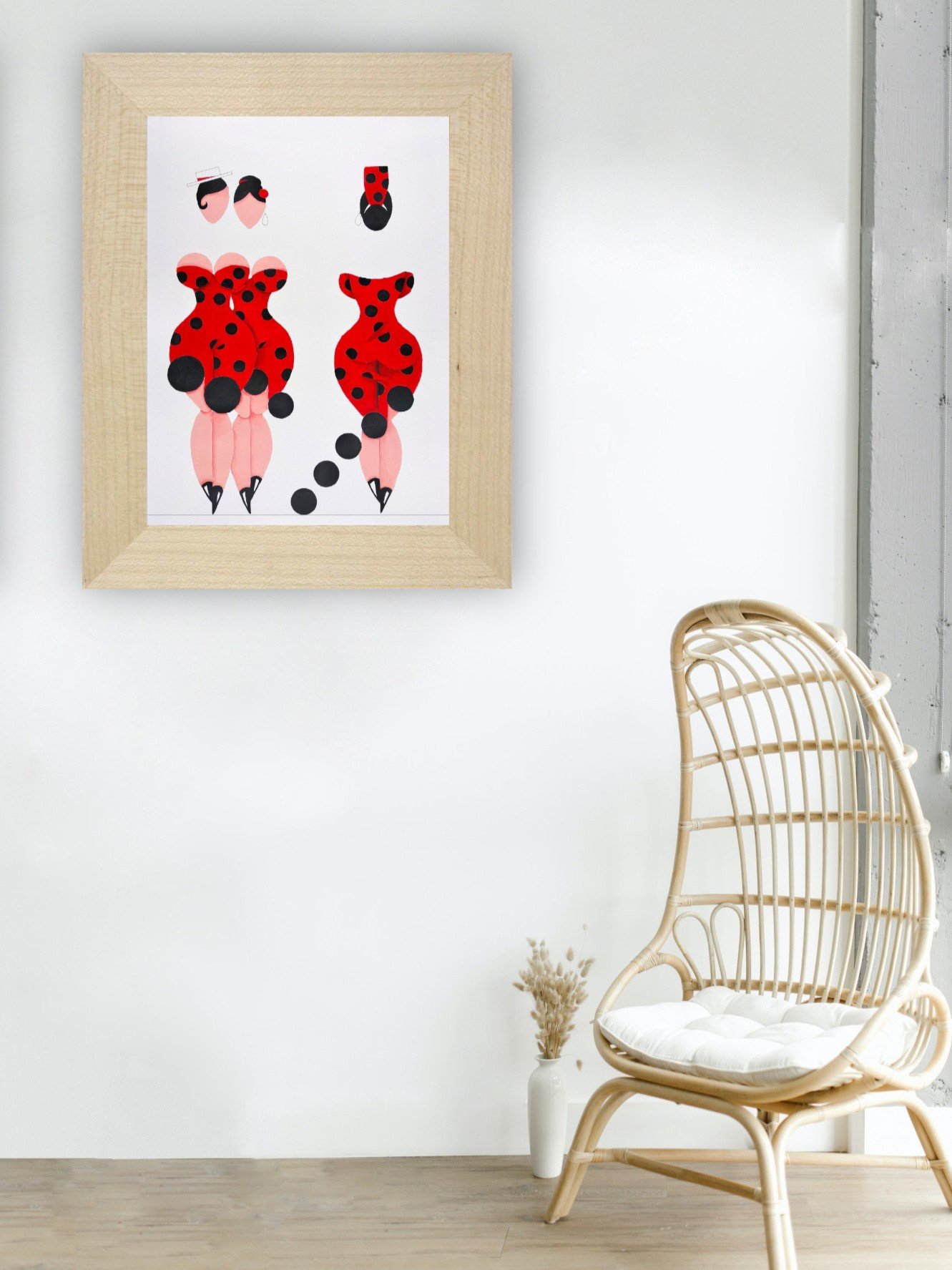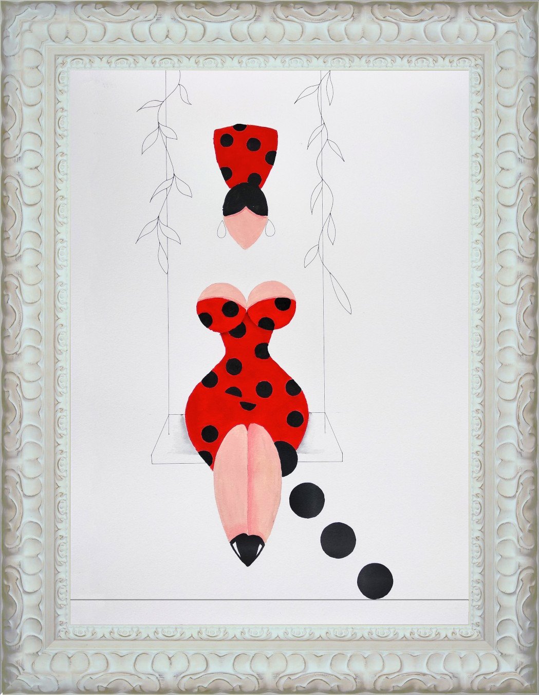 Las formas son simples, los colores puros, los fondos blancos. No hay brazos, ni cuello, ni rasgos que distraigan. La sensualidad aparece en la curva y en la presencia, no en el detalle.