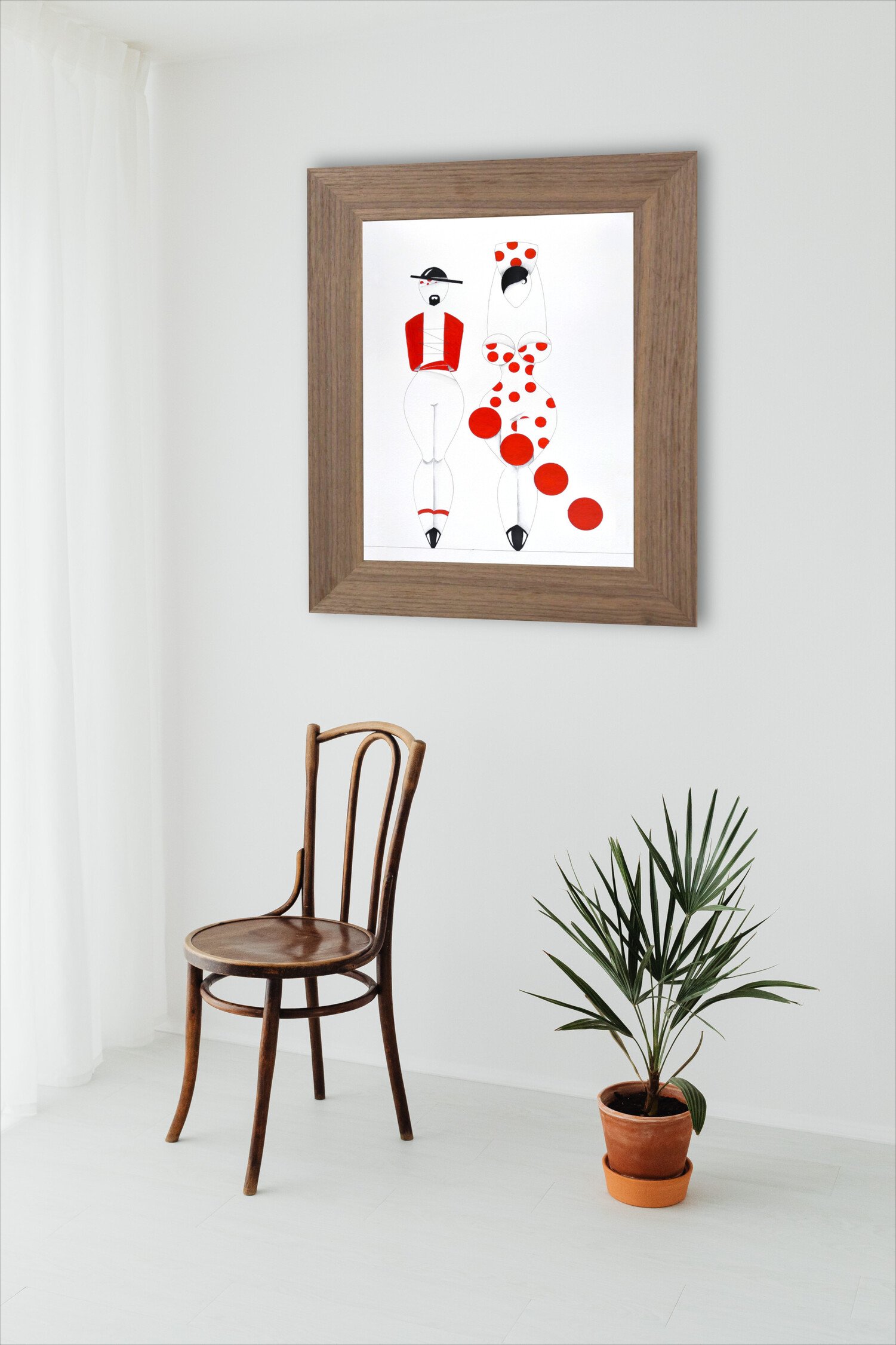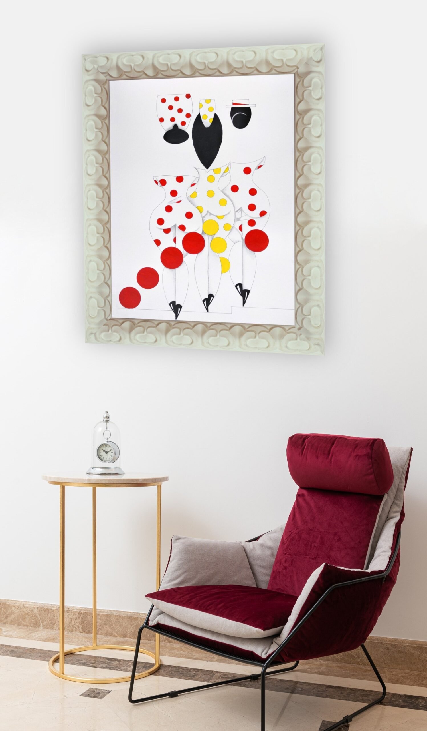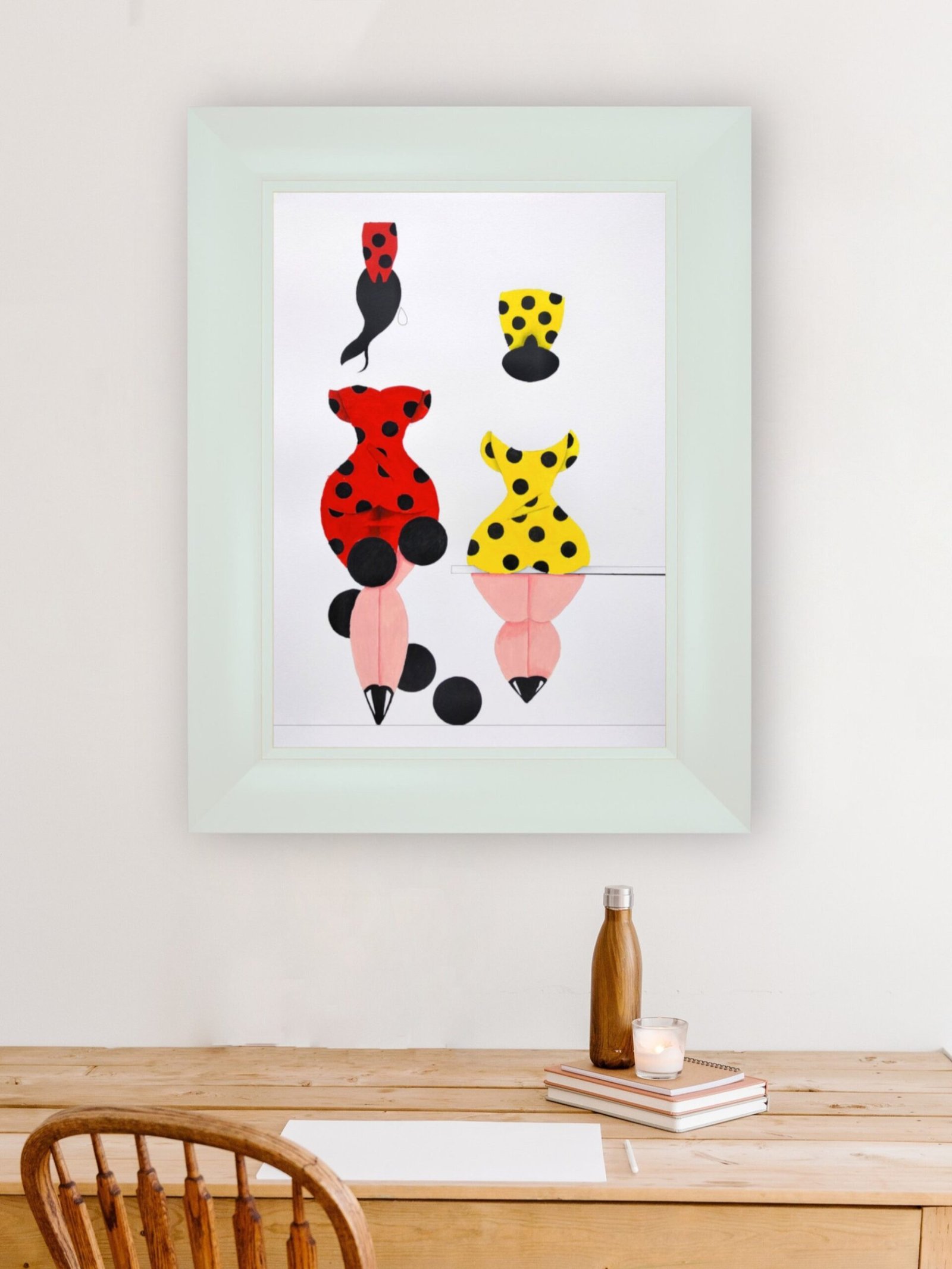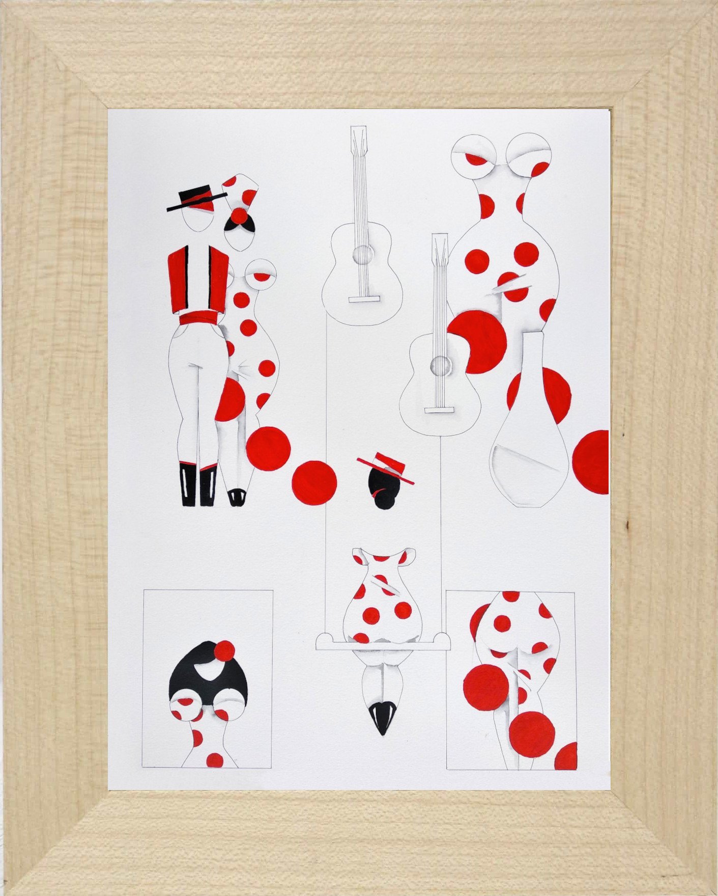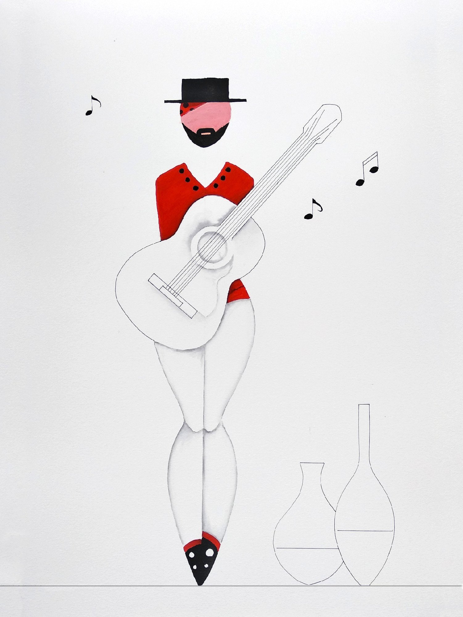 Las formas son simples, los colores puros, los fondos blancos. No hay brazos, ni cuello, ni rasgos que distraigan. La sensualidad aparece en la curva y en la presencia, no en el detalle.
